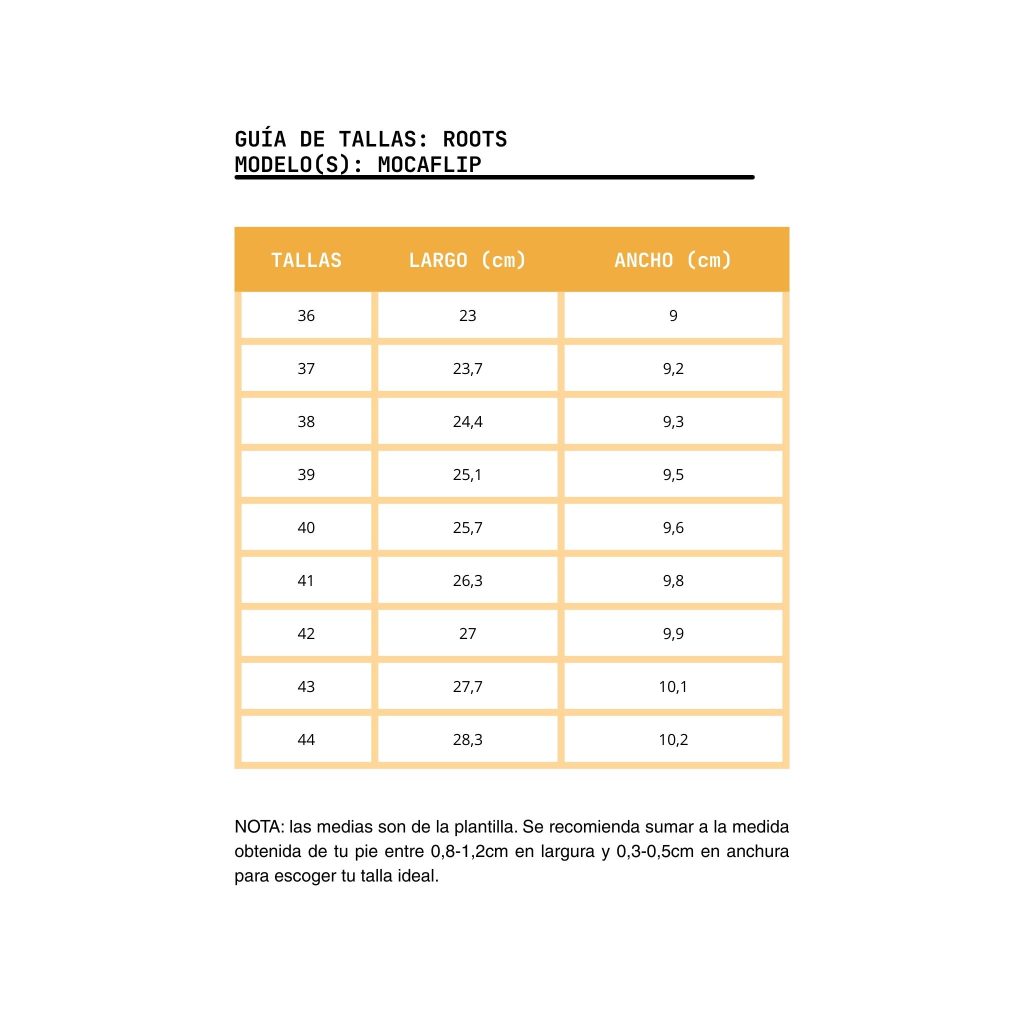 Las Roots Mocaflip están diseñadas para quienes buscan comodidad, ajuste y respeto total por el pie sin renunciar al estilo. Su sistema de doble hebilla lateral permite un ajuste preciso y personalizado, adaptándose fácilmente a distintas morfologías: pies con empeine bajo o alto, más anchos o más estrechos, garantizando siempre una sujeción segura y confortable.
